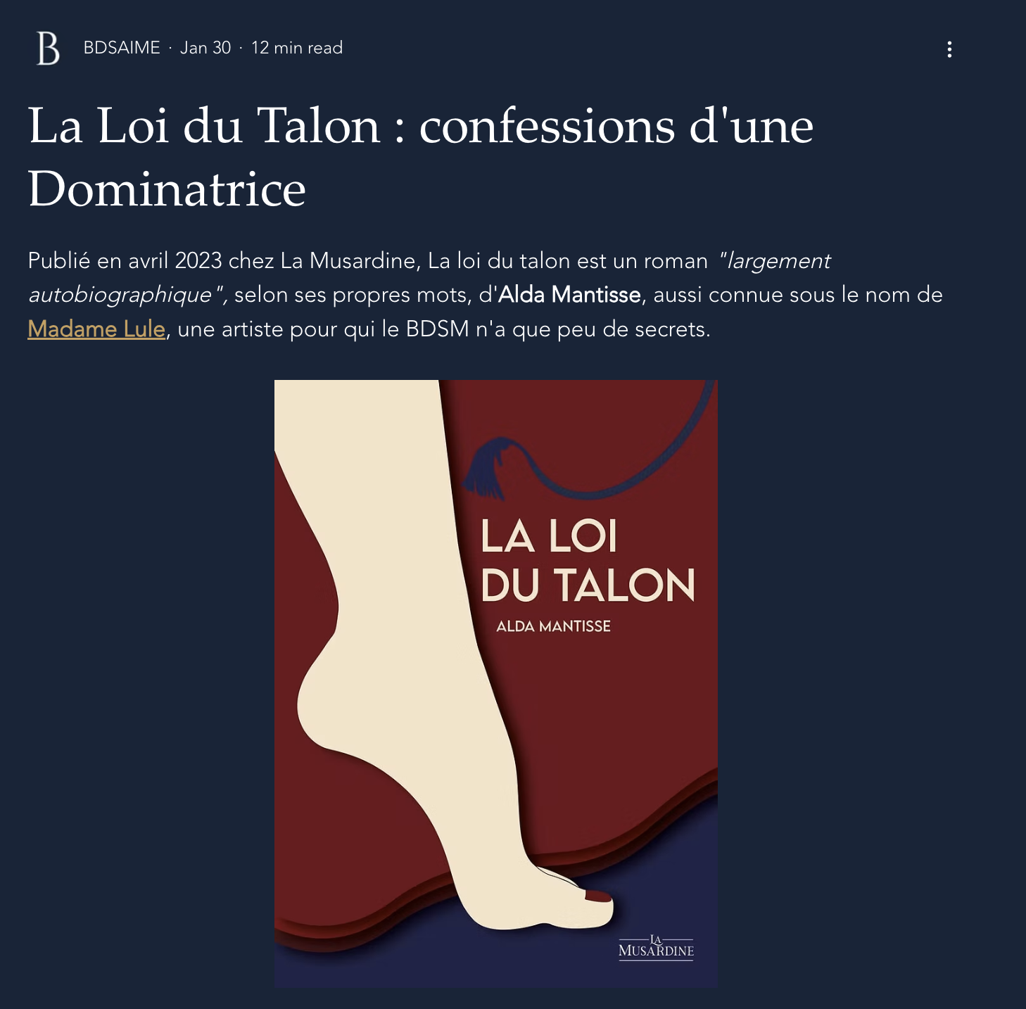 - Madame Lule, Dominatrice professionnelle, En Marge, L’émission des sans voix de Valentine Poignon (avril 2023).